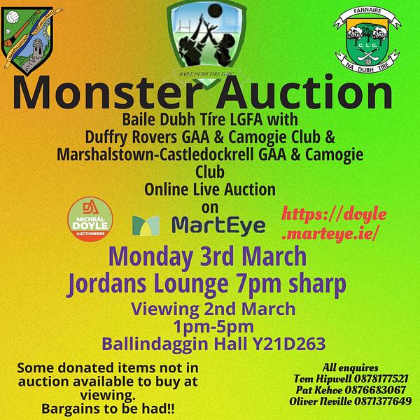 Full details of viewing times for items on Sunday (with Eircode), and the auction start time on Monday. Any questions just give us a call on the numbers shown.